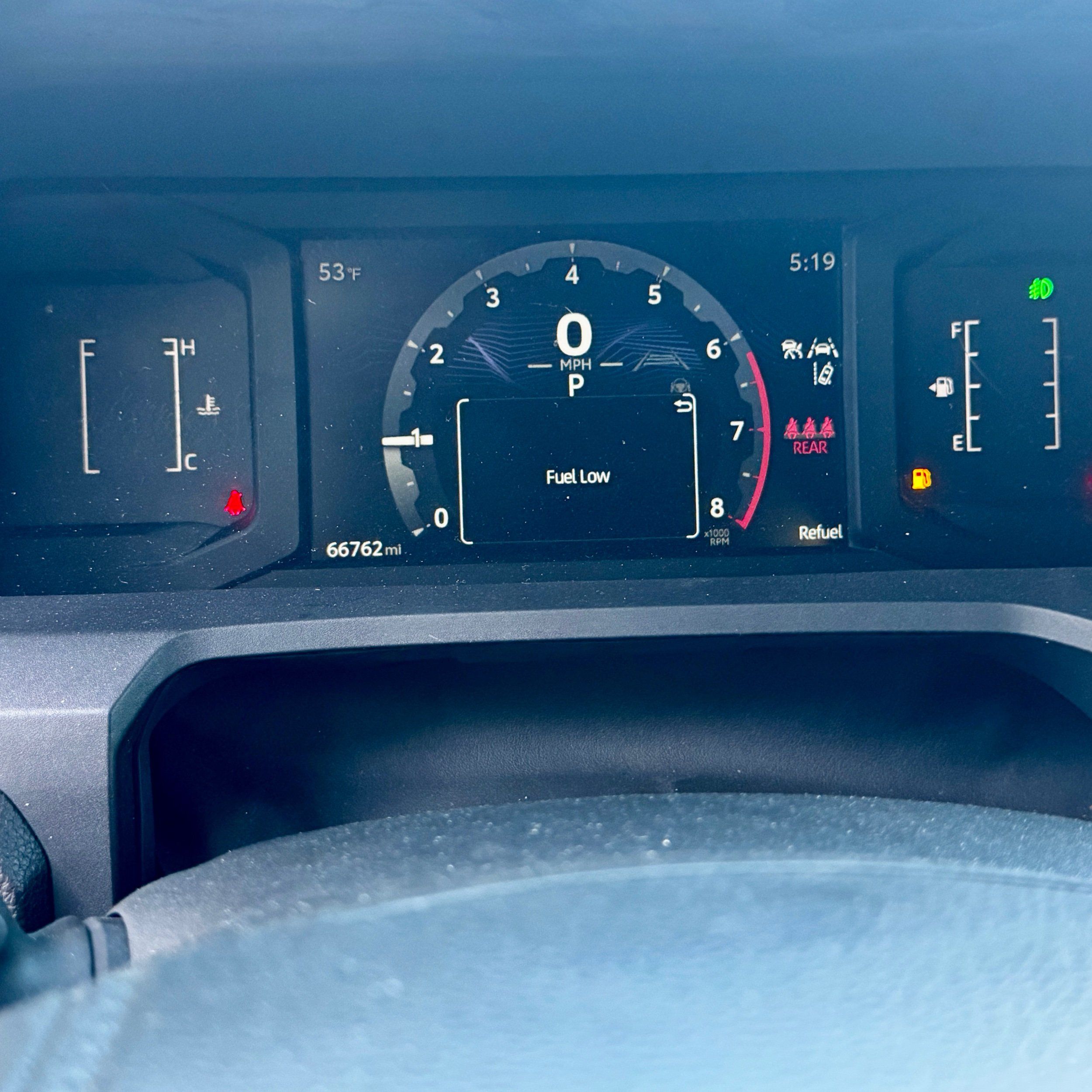 Low level warnings: Low level warning for fuel and brake fluid
